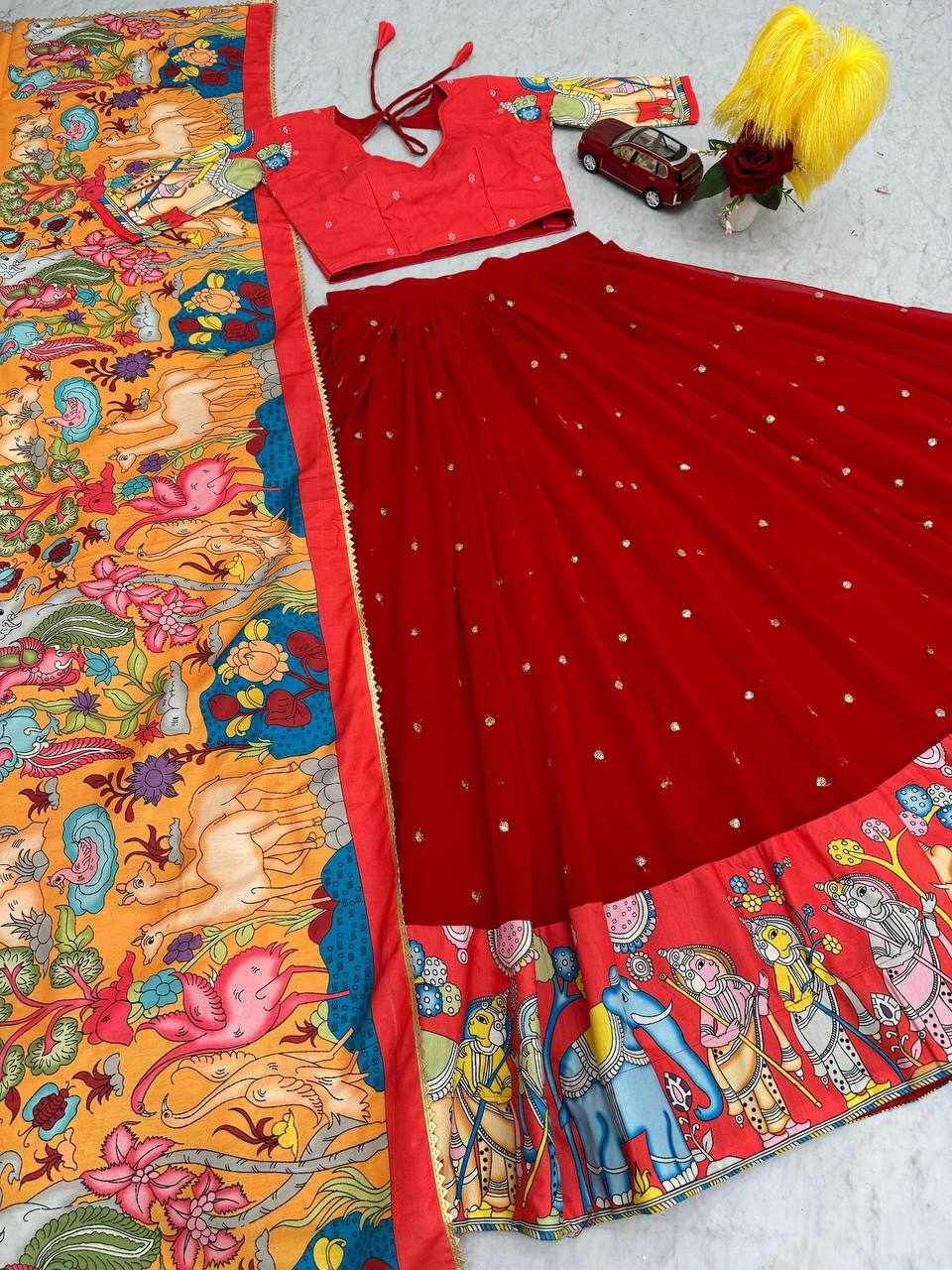 | Name : | PC 455 Red Kalamkari Print Lehenga |
