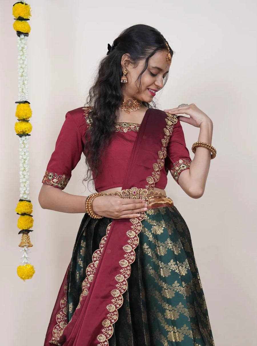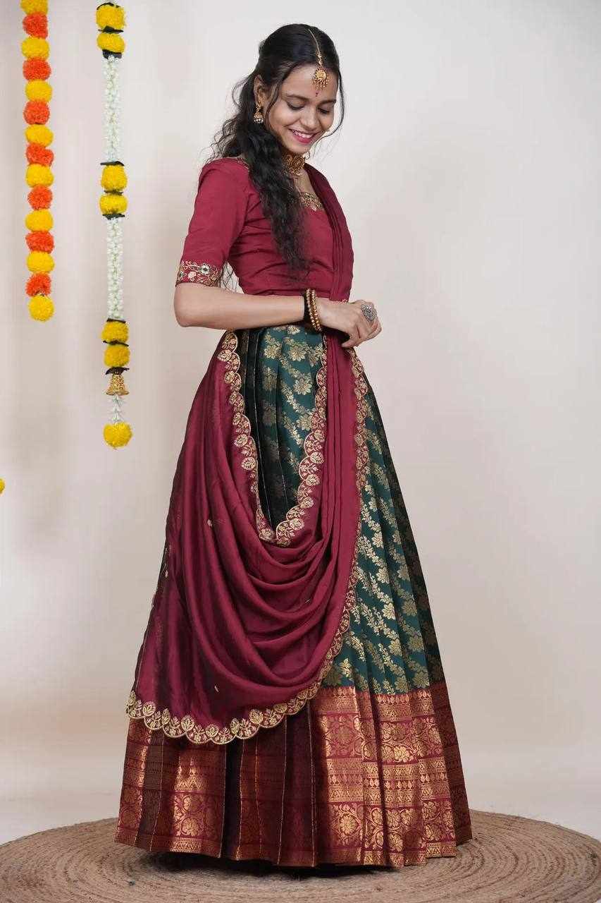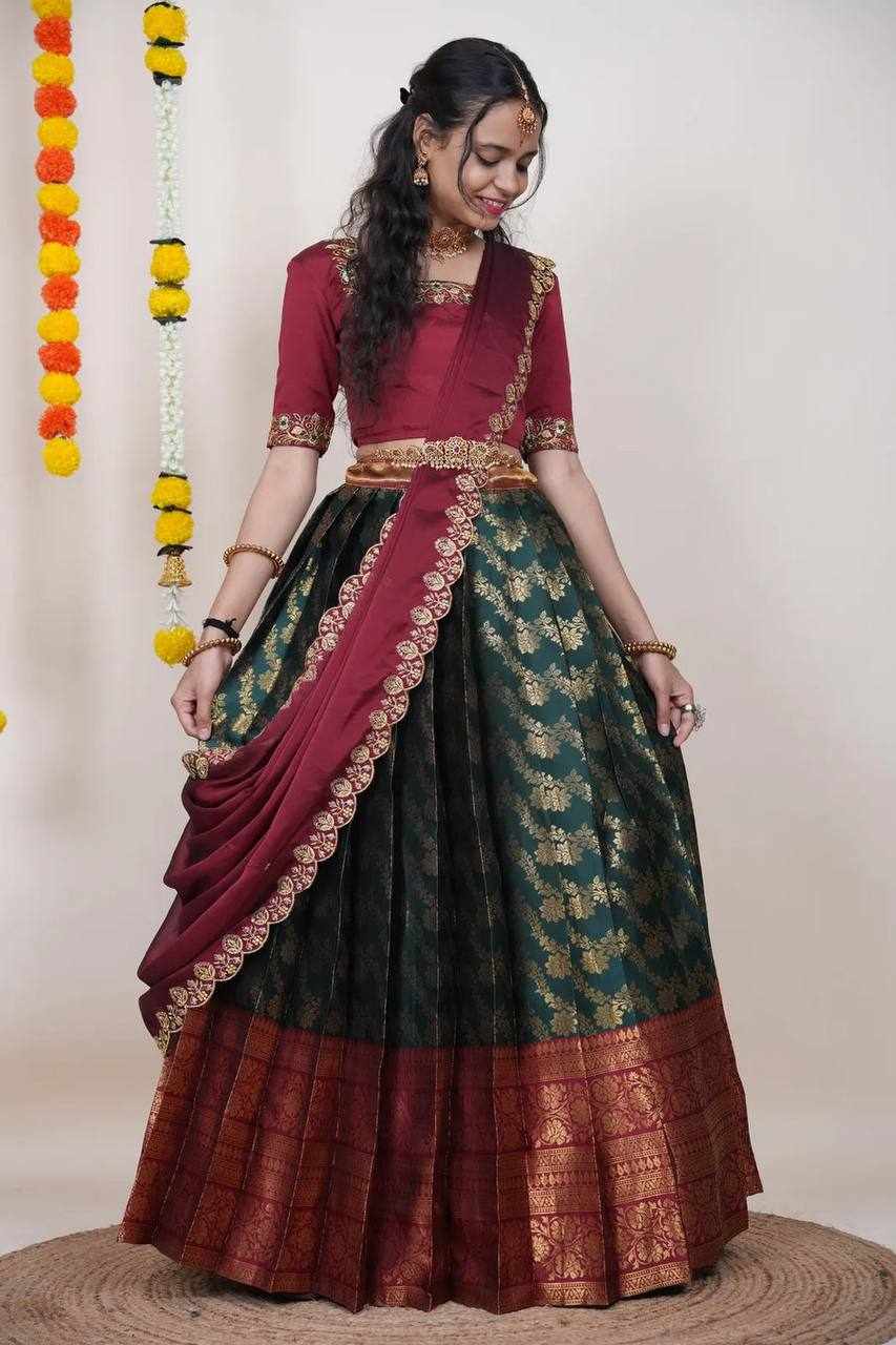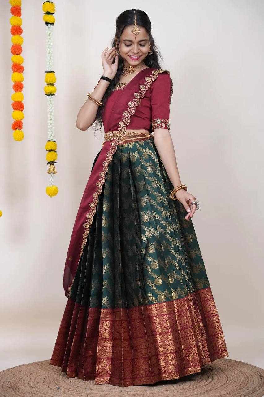 Name : KPW 332 Green Kanjiveram Silk Zari Lehanga