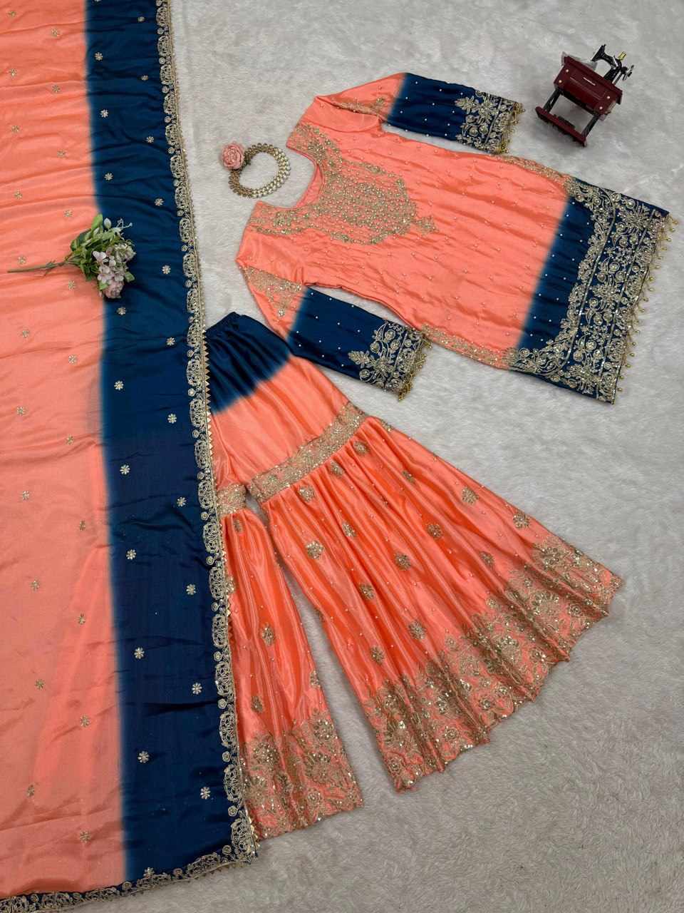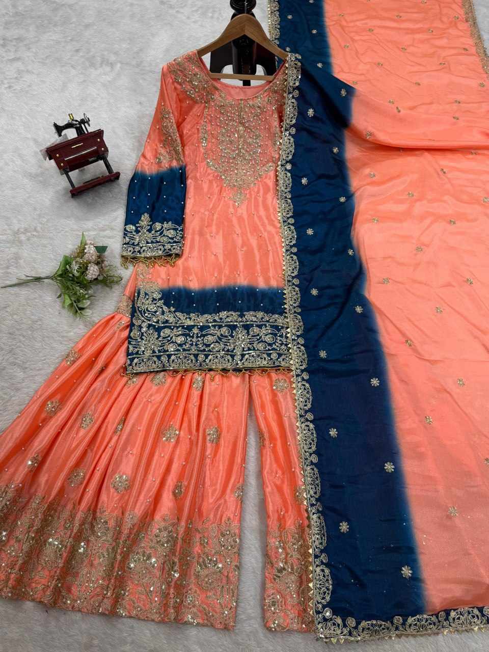 Home / KD 1498 Havy Chinon Orange Designer Suit