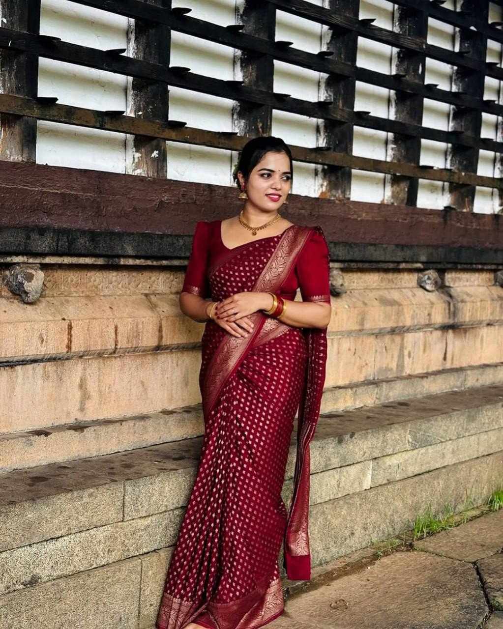 DESIGN : Beautiful rich pallu with jacquard work all over the saree.