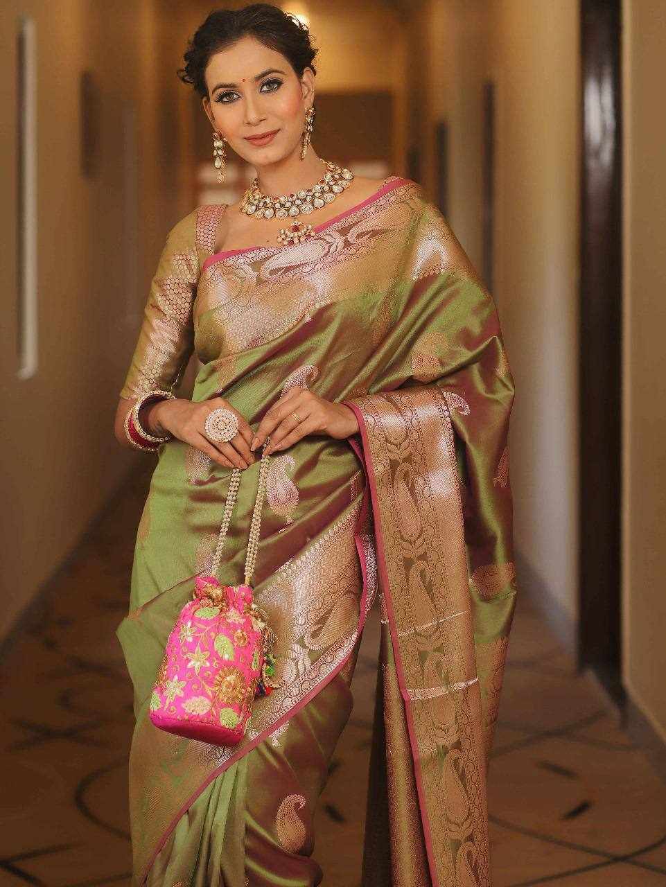 Home / KP-R 276 PURE GOLD ZARI ON Mehndi Colour Saree