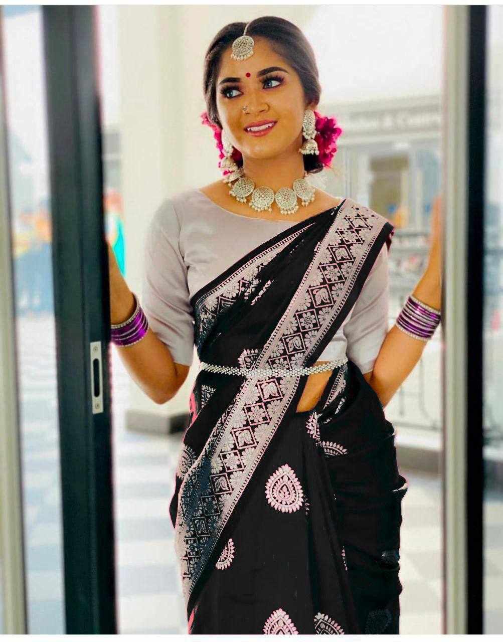 Home / KPR 214 BLACK SOFT LICHI SILK SAREE