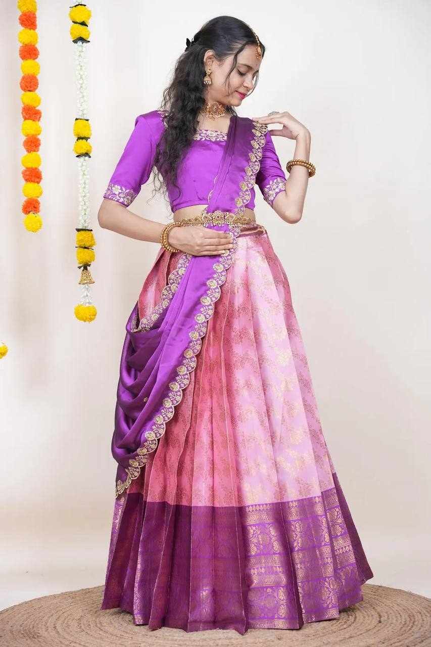 Home / KPW 332 Pink Kanjiveram Silk Zari Lehanga