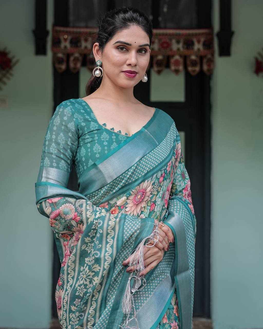 Saree Fabric: Silver Weaving Patta Linen Cotton