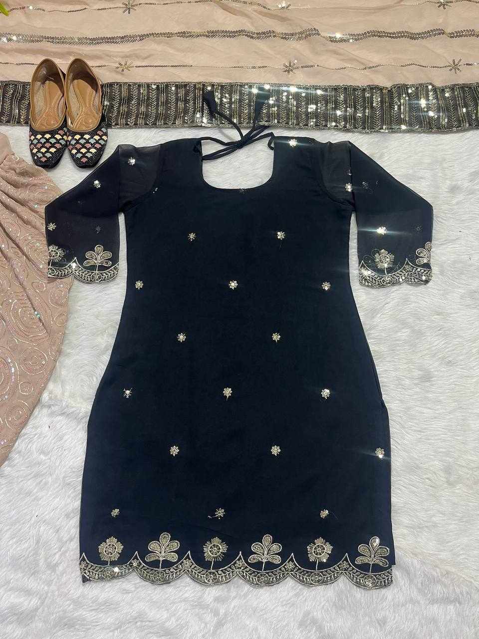Dhoti Salwar: Faux Georgette With Embroidery 5mm Sequence Work.