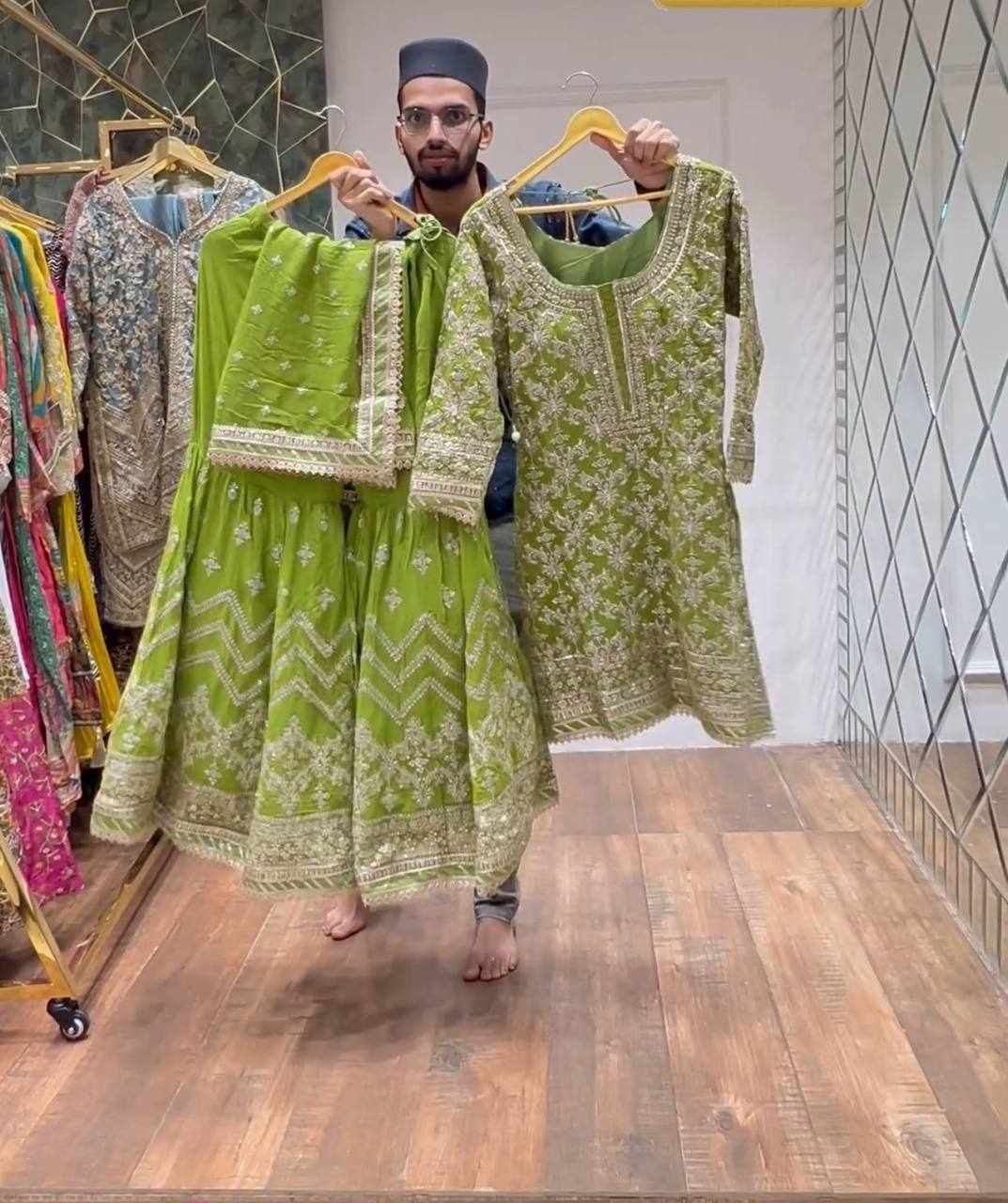 Home / MF 426 Green Heavy Faux Georgette Dress