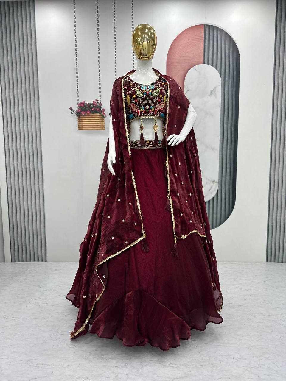| Name : | PC 501 Marron Heavy Embroidery Thread & Sequence Work Lehenga |