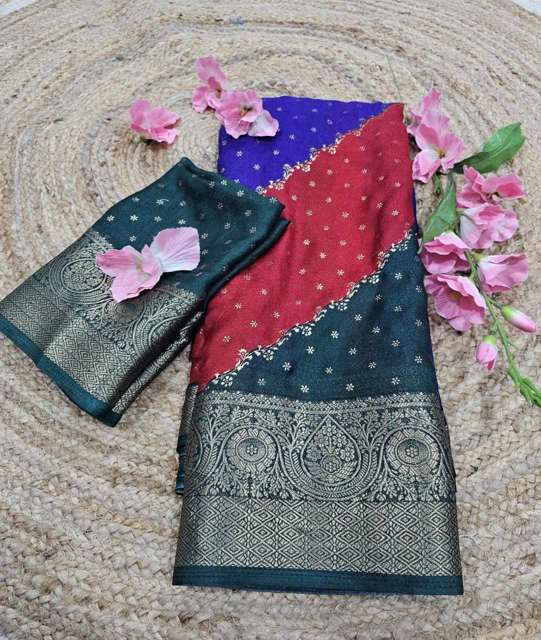 Saree Fabric :march mellow jecard border with foil printed sarees design