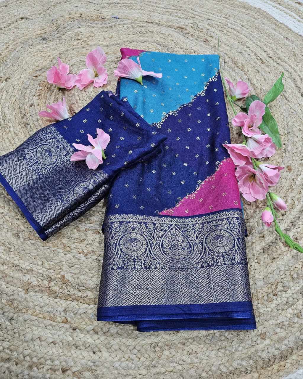 Saree Fabric :march mellow jecard border with foil printed sarees design