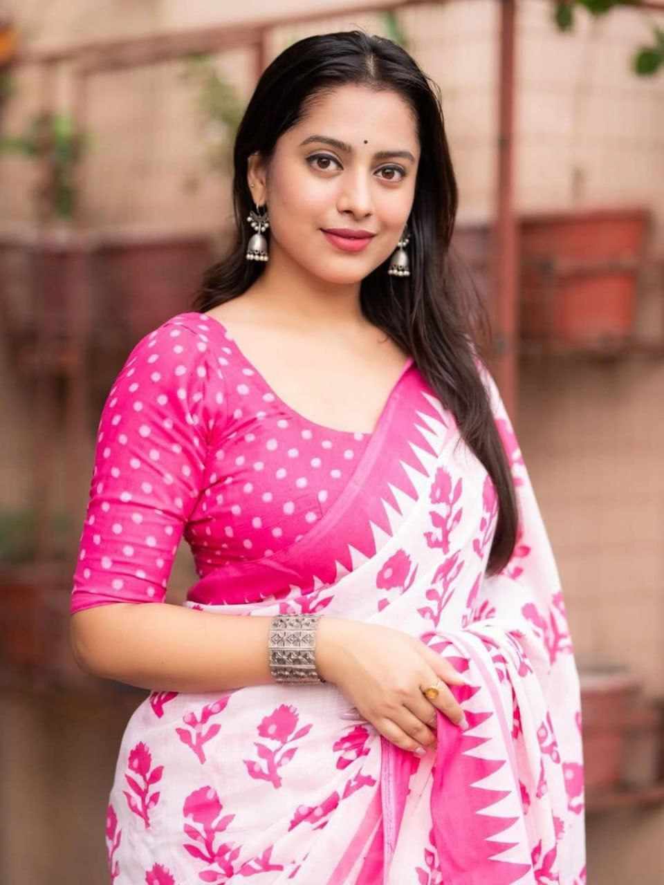 Home / PIYU P1020 White rose Pink Saree