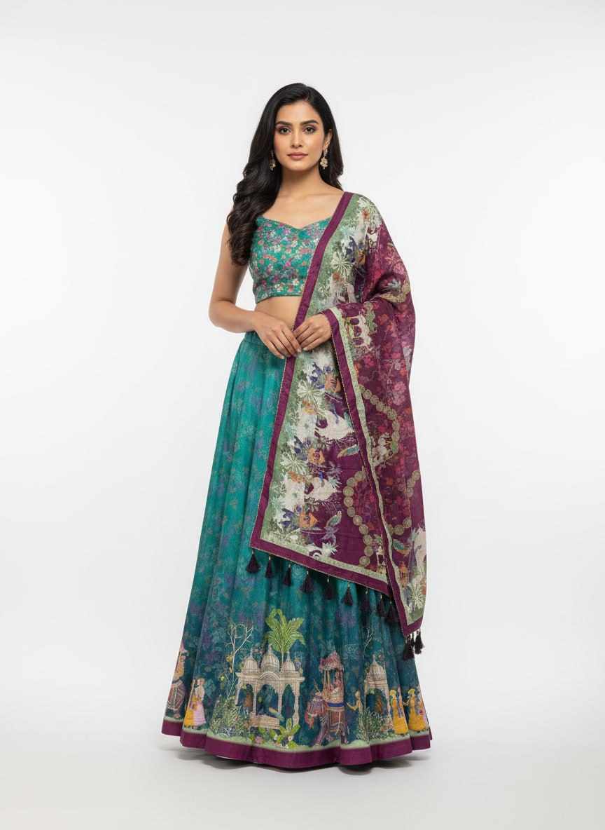 PIYU 21-2 Silk Digital Print Rama Color Lehnga