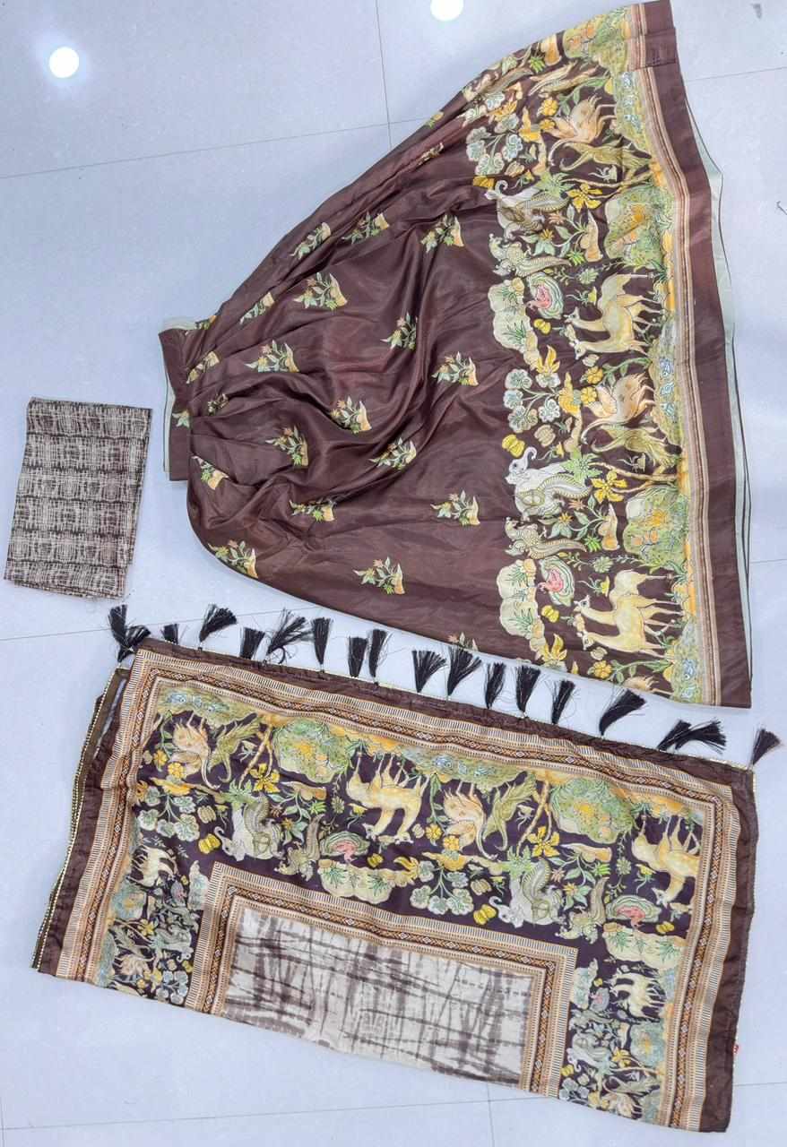 | Name : | PIYU 23-2 Silk Digital Print Brown Lehnga |