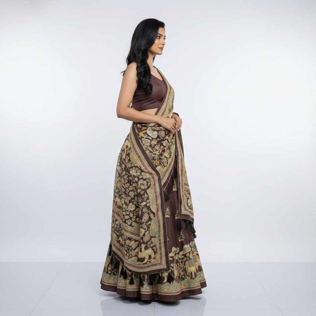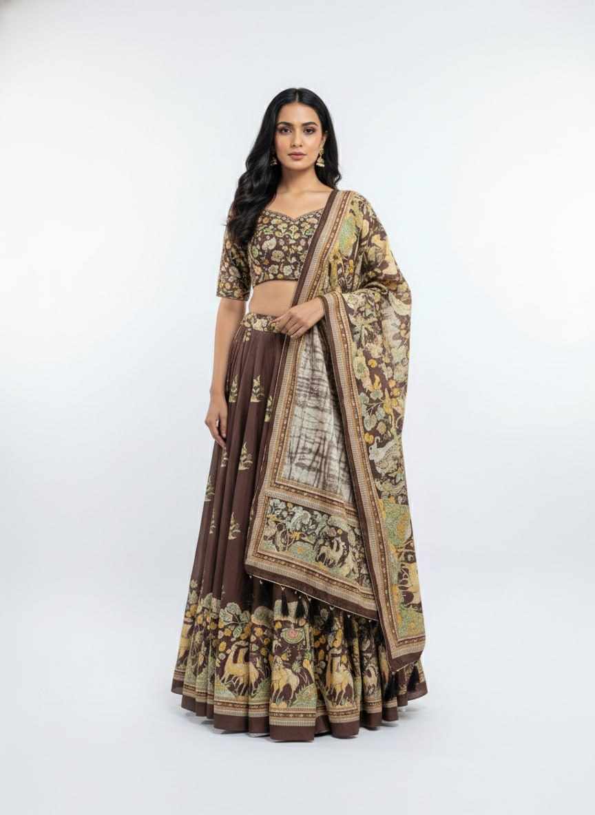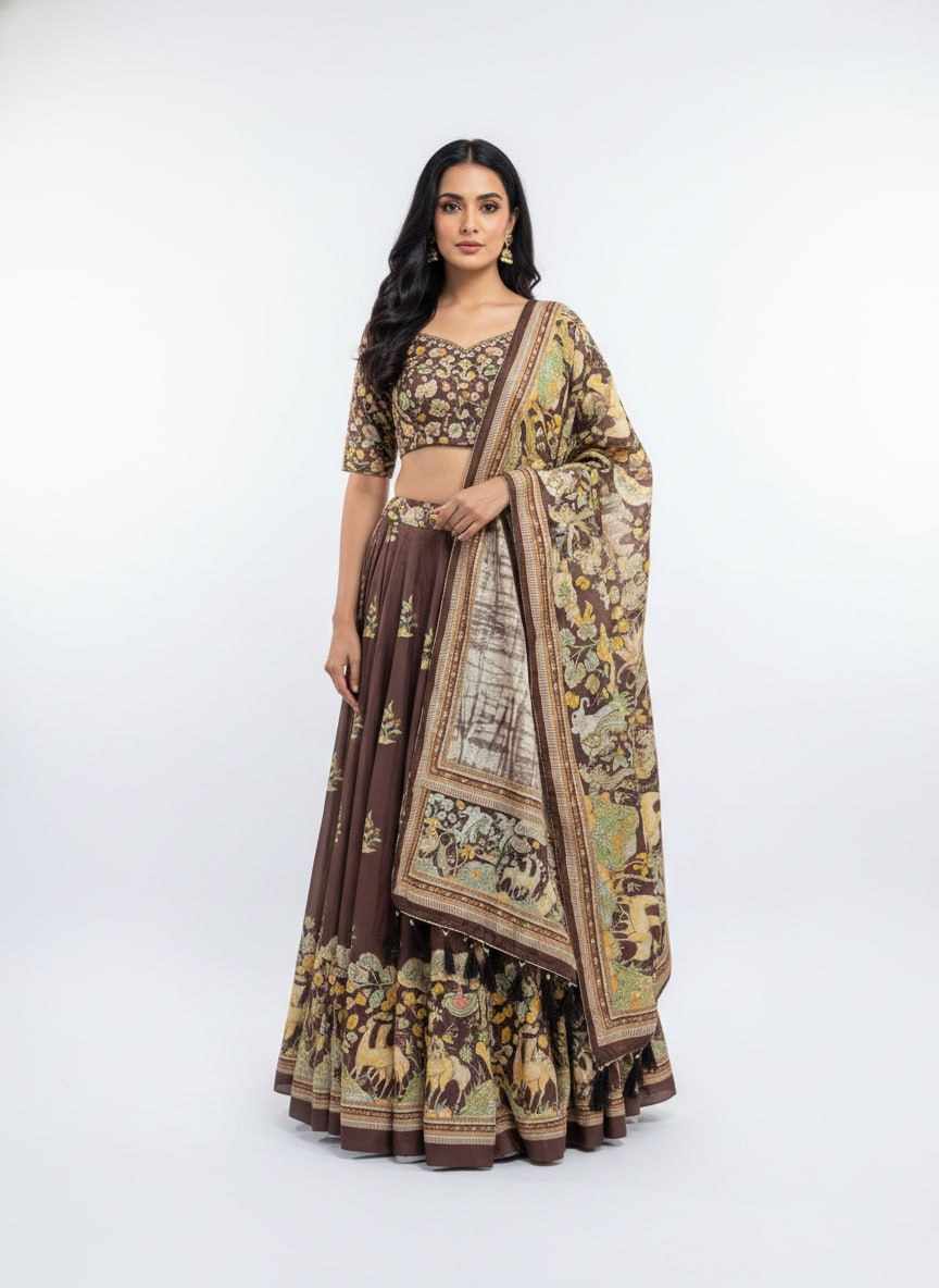 Home / PIYU 23-2 Silk Digital Print Brown Lehnga