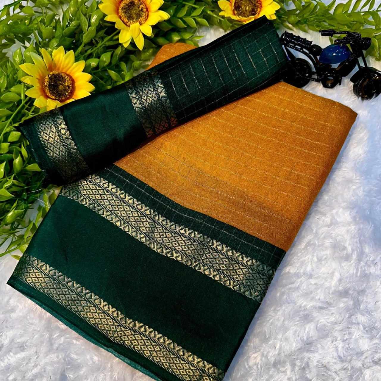 Saree Fabric : jeqard border with mill printed sarees design