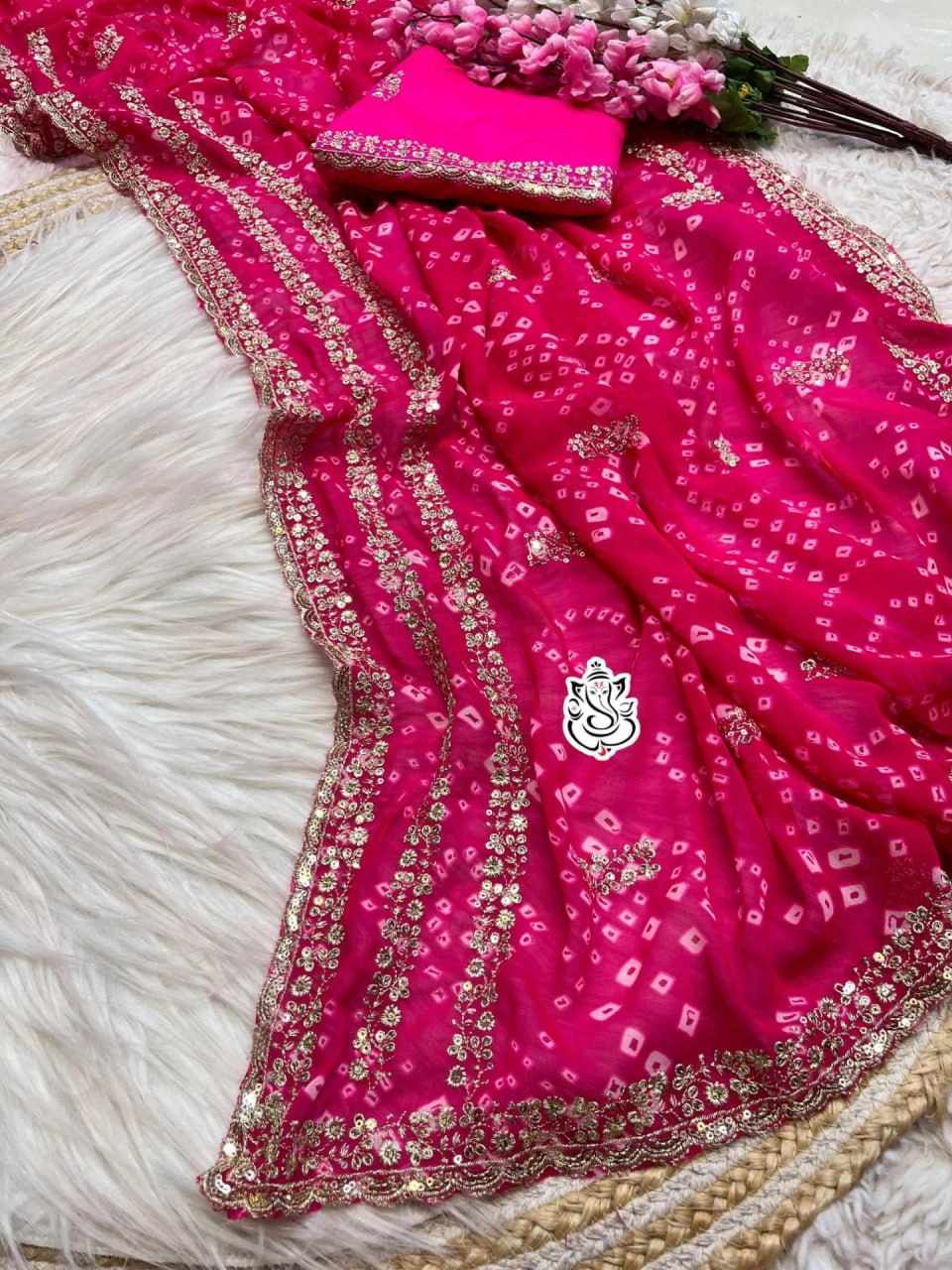 | Name : | PIYU P1033 LERIYA BANDHANI PINK SAREE |