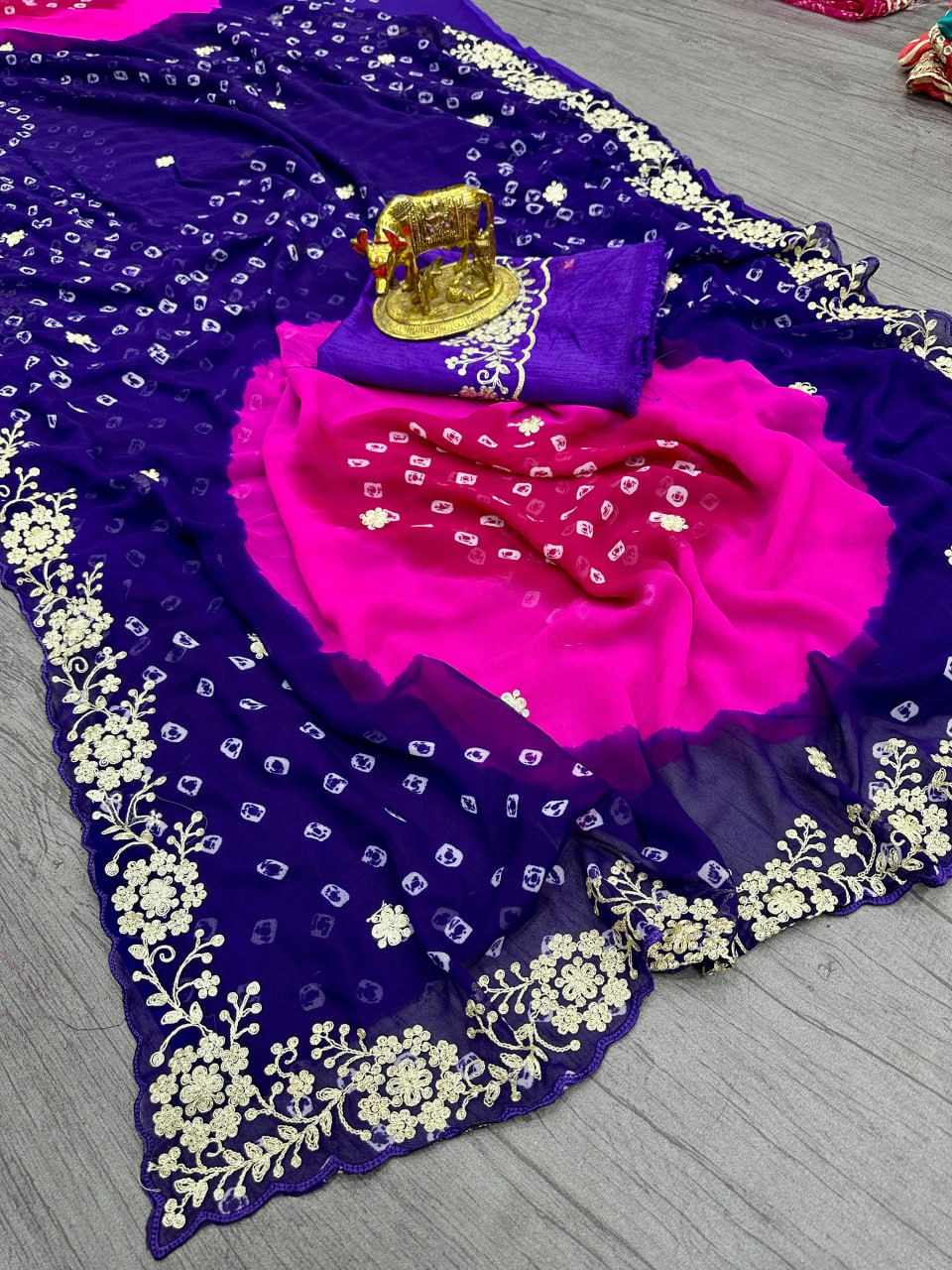 PIYU P1038 MULTI COLOR PURPLE BANDHANI Saree