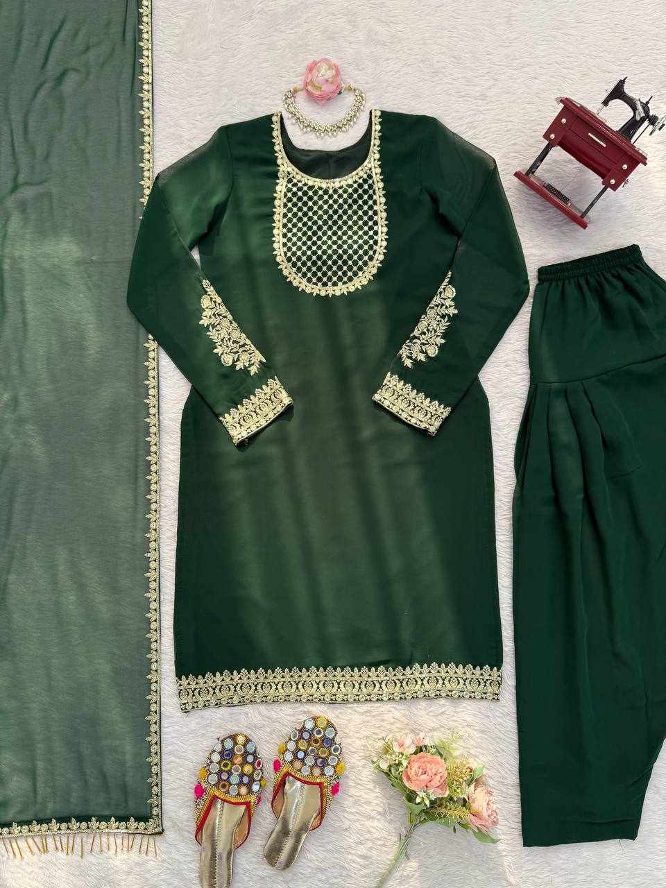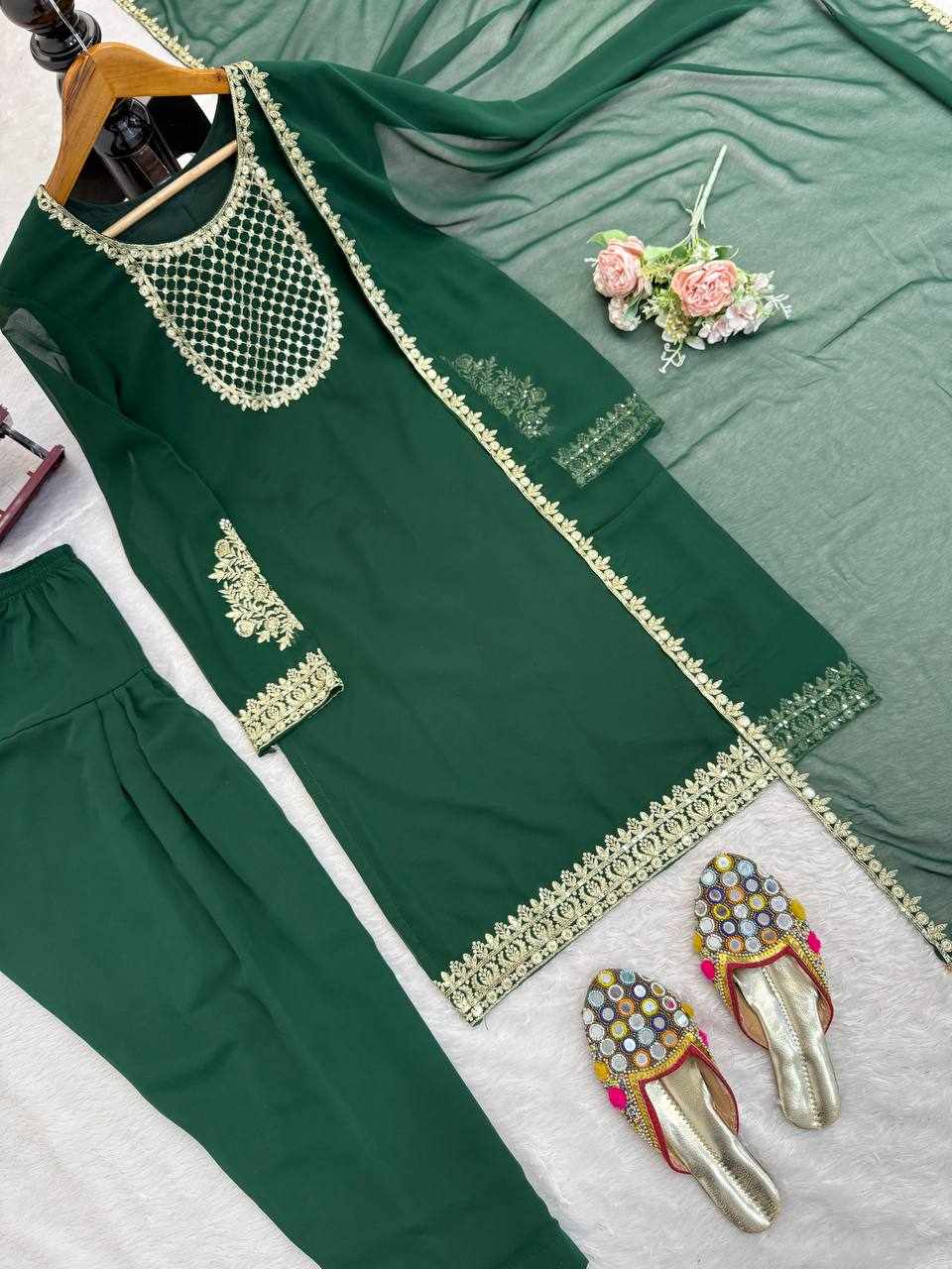 JKWH 998 Pure Fine Cotton Febric Embroidery Work A-line Kurti Set With Pocket