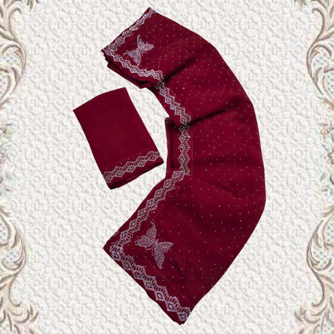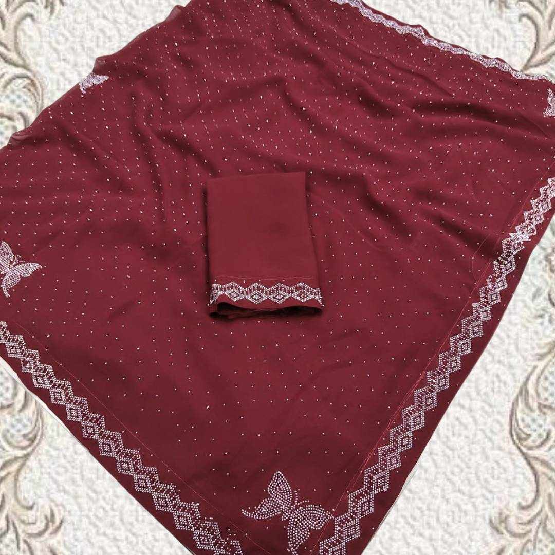 Home / S4s Maroon Siroski Butterfly Stones Lace Georgette Party Wear Saree