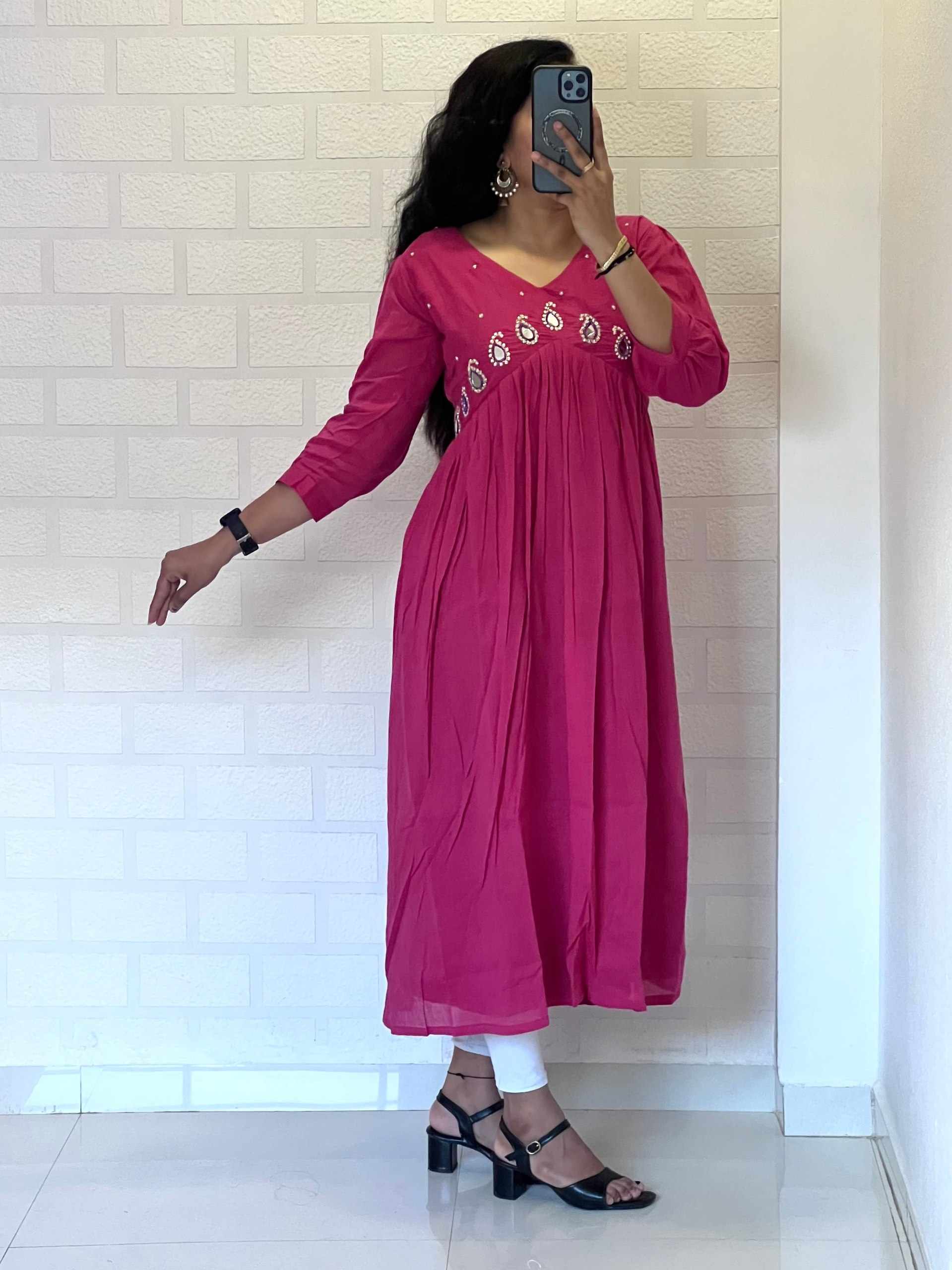 JKWH 997 Pure Fine Cotton Febric Embroidery Work A-line Kurti Set With Pocket